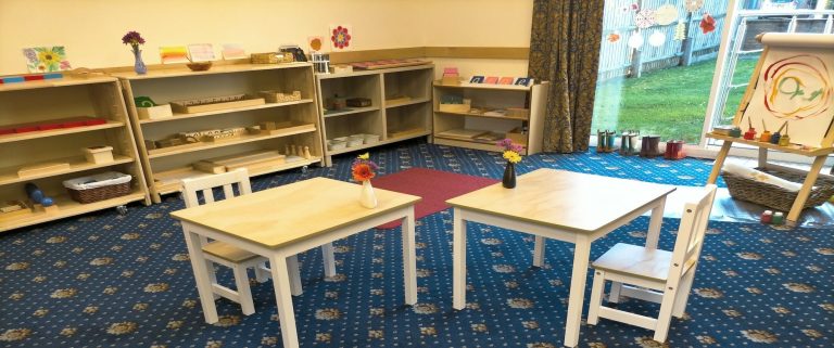 Our main hall is a mixed age classroom for children from 2.5 years to 5 years of age. This is a unique characteristic of the Montessori childcare method where the older children act as mentors for the younger ones. The open plan room is hosted by Montessori trained teachers in an environment especially prepared for this age group. There is immediate access to an outdoor space where the children can bring their work on sunny days. The children's regular attendance at the nursery lays the foundations for a small preschool community that, through working together as a group, will help them grow to their full potential.