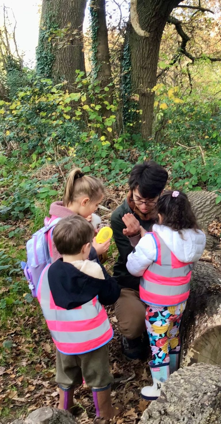 On Fridays our children are excited to go exploring along the Dollis Valley green spaces just outside our nursery. Many bugs and other insects are collected in containers for later examination on the science table at the nursery.